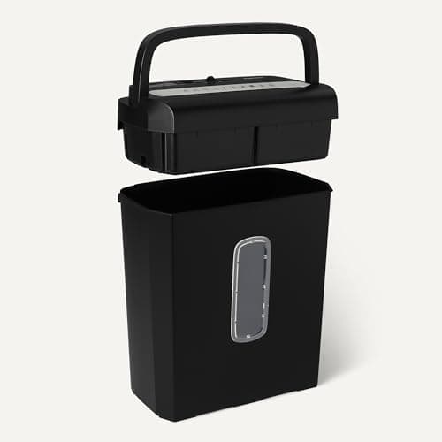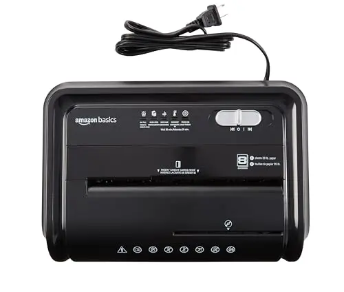 Amazon Basics 8-Sheet Strip Cut Portable Paper, CD, and Credit Card Shredder with Auto-Off, Overheat Protection, Compact Design, No Basket, Extendable Arm, Black