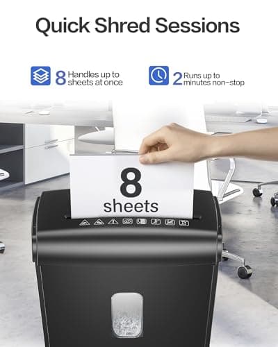 - Up to 8-Sheet paper shredder