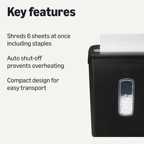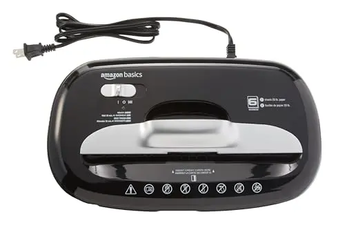 Amazon Basics 6-Sheet Cross-Cut Paper and Credit Card Shredder with 3.8 Gallon Bin, Shreds Staples, Black