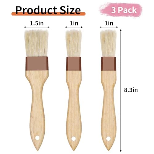 3 Pcs Pastry Brush, Natural Bristle Basting Brush, Cooking Brush, Food Brush, Butter Brush, Baster Brush, BBQ Brushes for Sauce, Kitchen Baking Brushes for Oil, Grilling, Marinade