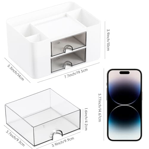 QIYVLOS Desk Organizer with 3 Drawer, Multi-Functional Pencil Pen Holder for Desk, Desk Organizers and Storage with 8 Compartments, Desktop Organizer for Office Home Art Supplies (White)