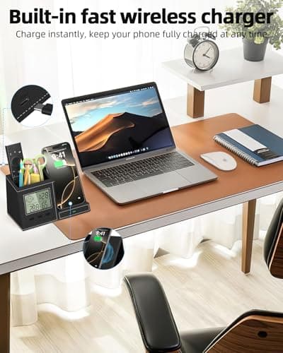 Multifunctional Pen Holder and Organizer for Desk with Wireless Charger, Digital Indoor Thermometer and Humidity Gauge, Home Office Organizers and Storage (Battery Included)