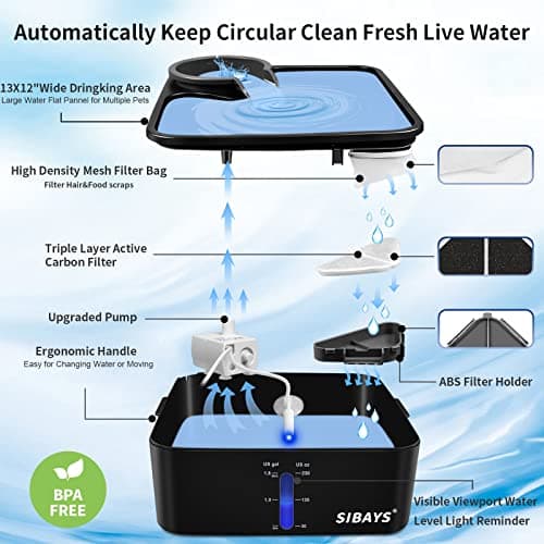 A comprehensive comparison of the 40 best 129 oz Plus pet water fountain products. Top brands include Veken, PETLIBRO and FEELNEEDY. Based on our analysis, the highly-rated option is SIBAYS 2 Gallon Dog Water Fountain for Large Dogs, Automatic.... These rankings are based on real-world performance, user reviews, and value for money.