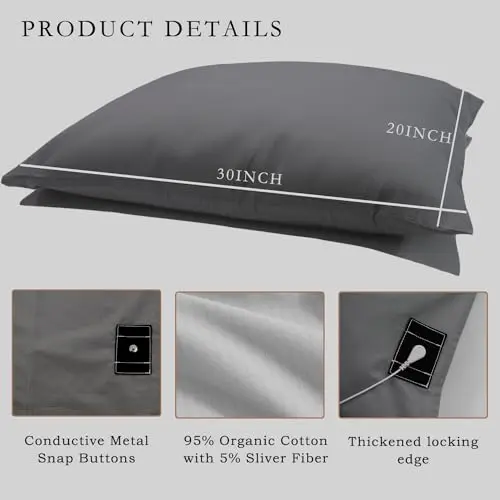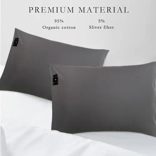 Miracle Made Extra Luxe Cool-to-The-Touch Pillowcase Set, 2-Piece – Soft, Breathable, Silver-Treated Cotton Covers – Standard Size, Silver Grey