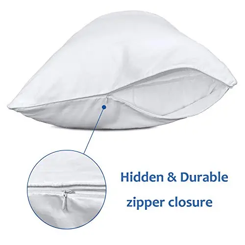Amazon Basics Standard Breathable 100% Cotton Hypoallergenic Pillow Protector with Zipper, Machine Washable, White, 27 x 21 Inches, Pillows Not Included