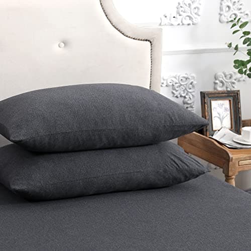 PURE ERA Jersey Knit Pillowcases 100% T-Shirt Cotton Super Soft Comfy Breathable, Set of 2, Standard 20" x 26", Heathered Charcoal Grey