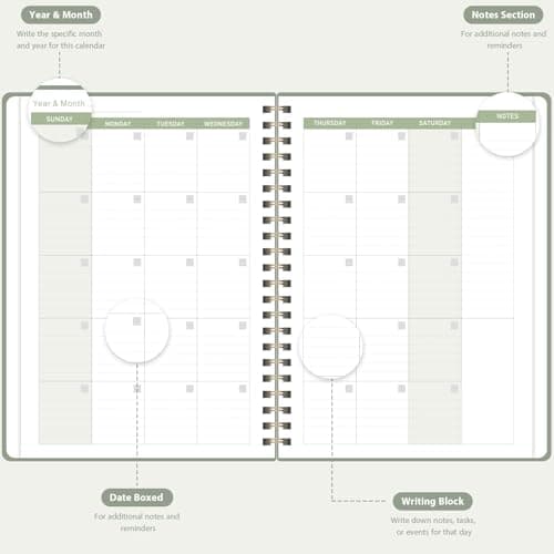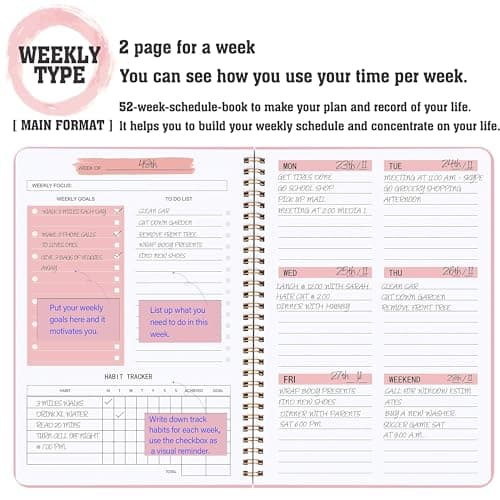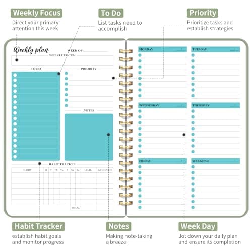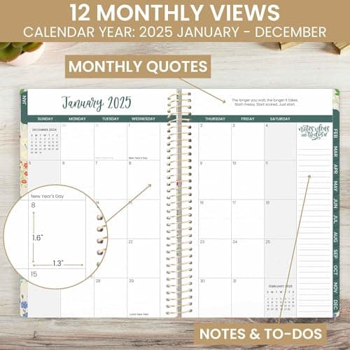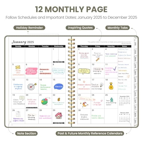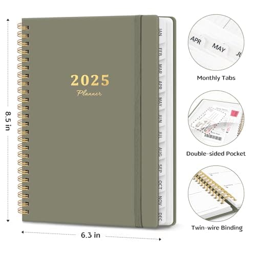 SUNEE 2025 Weekly and Monthly Planner - from January 2025 - December 2025, 6.4" x 8.3" Daily Agenda Planner with Monthly Tab, Flexible Cover, Note Pages, Pockets, Bookmark, Spiral Binding, Black