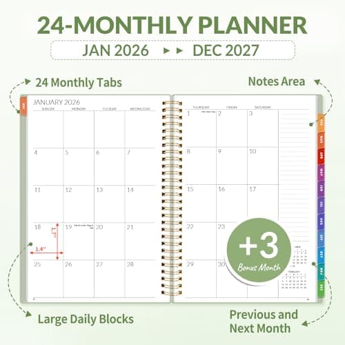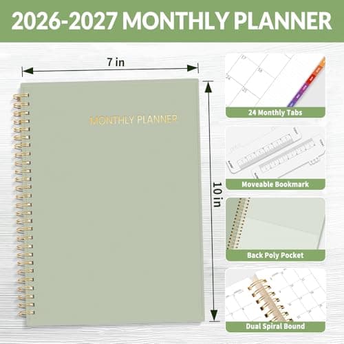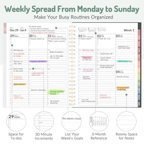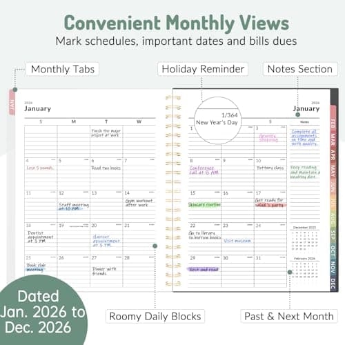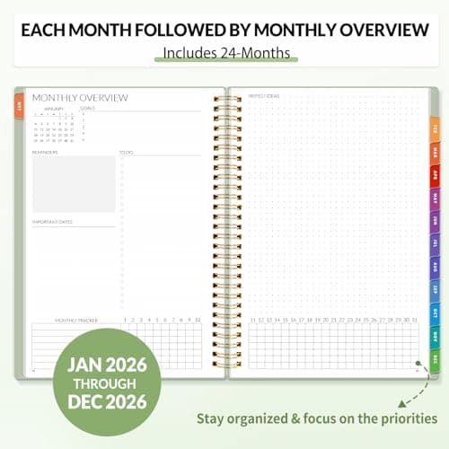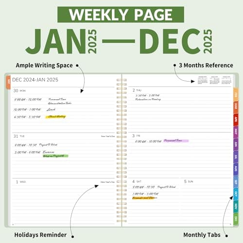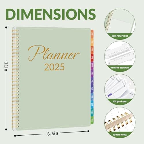 2026 Planner, Weekly and Monthly Calendar Planner from January 2026 - December 2026, 8.5" x 11" Hardcover Leather Hourly Appointment Book with Tabs, Spiral Daily Planners for School Work Home, Green