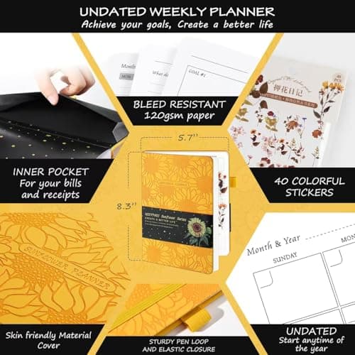 Oucaru Undated Weekly Planner, A5 To Do List Notebook with Goal & Habit Tracker Organizer, 52 Weekly Planner Notebook with Spiral Binding for Office Home School Supplies