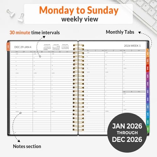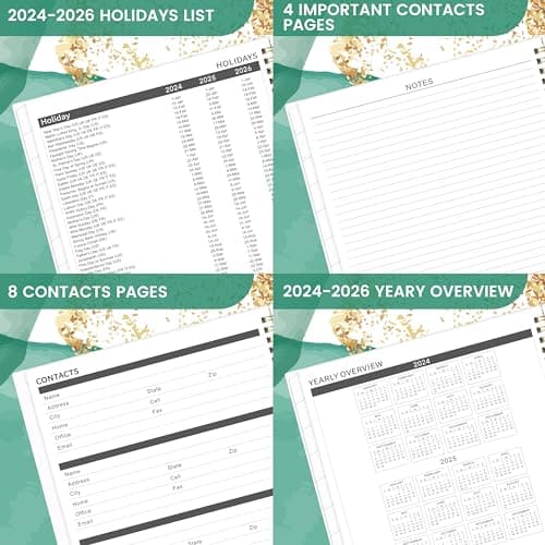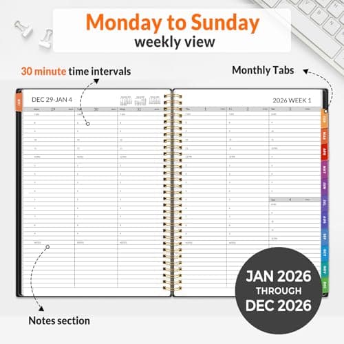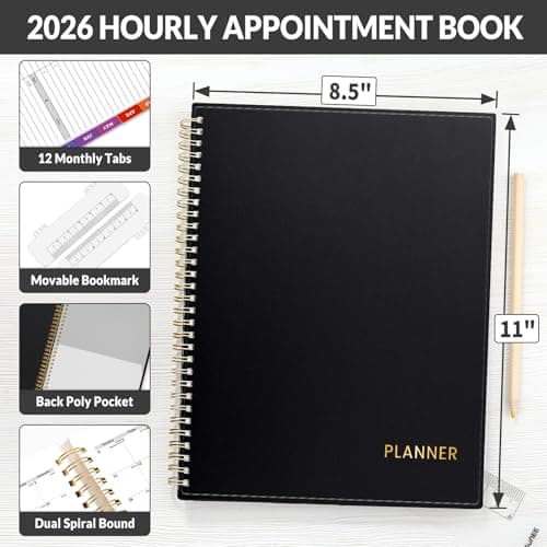 2026 Planner, Weekly and Monthly Calendar Planner from January 2026 - December 2026, 8.5" x 11" Hardcover Leather Hourly Appointment Book with Tabs, Spiral Daily Planners for School Work Home, Green