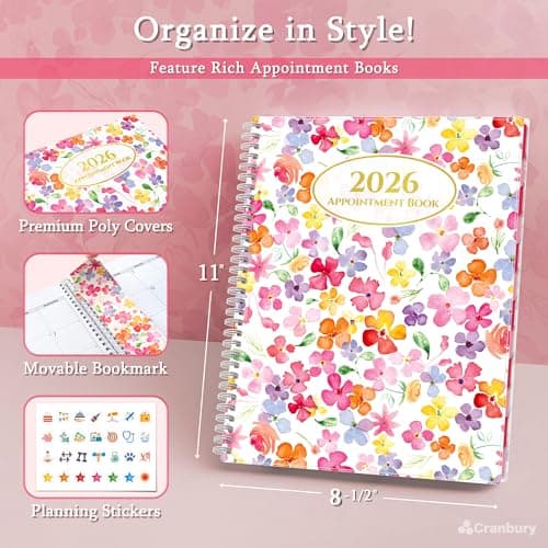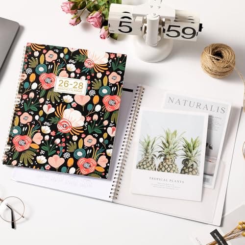 HARDCOVER 2026 Planner, 8.5"x11": 14 Months (November 2025 - December 2026), Daily Weekly Monthly Planner, Yearly Agenda, Bookmark, Pocket Folder and Sticky Note Set (Rainbow Floral)