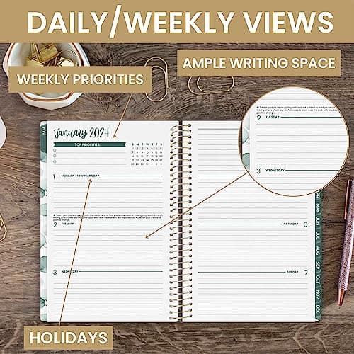 bloom daily planners 2024 Calendar Year Day Planner (January 2024 - December 2024) - 5.5” x 8.25” - Weekly/Monthly Agenda Organizer Book with Stickers & Bookmark - Boho Greenery