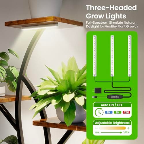 HOMKIRT Plant Stand with Grow Light, Plant Shelf Indoor for Mutiple Pots, 7 Tiers Wood Plant Ladder Holder Flower Stand for Corner Living Room Patio Boho Home Decor