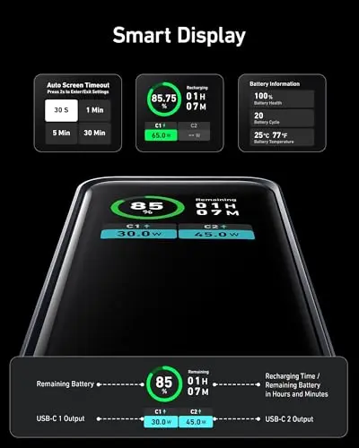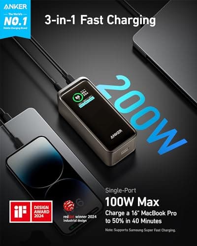 Anker Prime Power Bank, 27,650mAh 3-Port 250W Portable Charger for Travel, TSA-Approved, Smart App, for MacBook Pro/Air, iPhone 16/15/14 Series, Samsung, Laptops, and More (Charging Base Not Included)