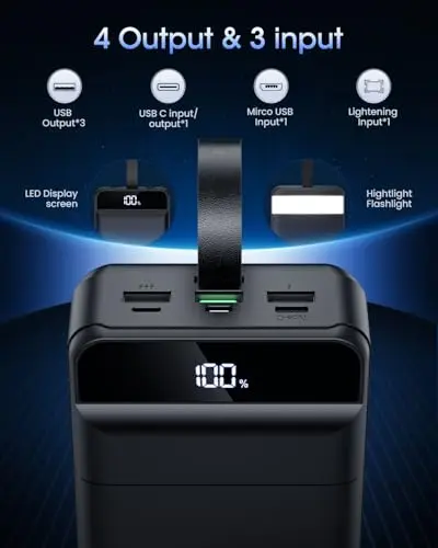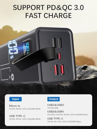 Camping changes the priorities: you want a power bank that can survive drops, dust, rain, and cold nights, and still deliver steady power. Look for rugged construction, water resistance, and enough capacity for multiple days—especially if you’re charging headlamps, GPS, or a camera. USB-C PD helps for faster top-ups, while extra USB-A ports keep the whole campsite covered. The trade-off is weight and slower recharge time.