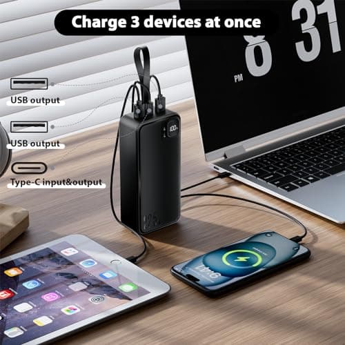 - Built-In Cables portable charger power bank