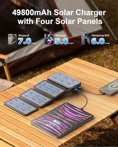 Solar Charger Power Bank 49800mAh - Portable Fast Charging Power Bank with Type-C & Dual USB Ports, Compatible with iPhone, Samsung & More, Waterproof Solar Panel for Camping, Hiking, and Outdoor Use