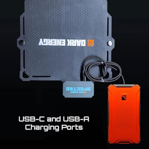 Dark Energy Poseidon Pro Indestructible Portable Charger with Spectre 18W Solar Panel | USB-A and USB-C, Ultra-Durable Armorflex, Ultra-Lite Flexible Panels | Signature Series Path, Hi-Vis Orange