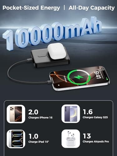Compared with the broader portable charger category, magnetic wireless packs trade speed and capacity for one-handed ease. They’re less efficient, can run warmer, and often carry fewer full charges per size. If you already carry a cable and want the most power per ounce, the general category will get you more mileage.