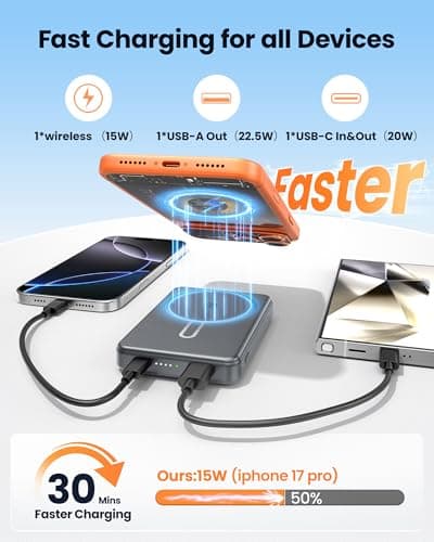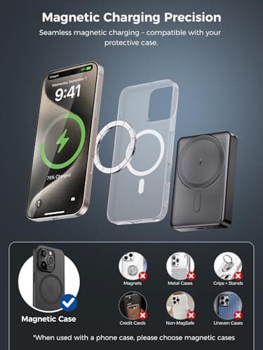 This refinement is really for iPhone 12–17 owners who want cable-free charging during commutes, meetings, or short trips. If you need faster charging or want to power tablets and laptops, a wired option like a USB-C portable charger power bank is a better fit. If your priority is multiple devices and long days away from outlets, the travel-focused page will serve you better.