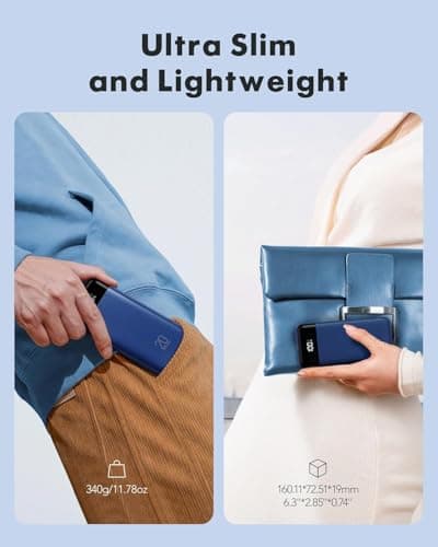Travel picks should be light, compact, and quick to top off during layovers. Aim for enough capacity to refill a phone once or twice, plus a spare port for earbuds or a second device. You also want reliable fast charging, airline-safe build quality, and a shape that slips into a seat pocket. Compared with the wider portable charger power bank category, travel models trade max capacity for carry comfort and faster access.