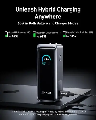 Anker Prime Power Bank, 27,650mAh 3-Port 250W Portable Charger for Travel, TSA-Approved, Smart App, for MacBook Pro/Air, iPhone 16/15/14 Series, Samsung, Laptops, and More (Charging Base Not Included)