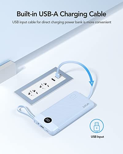 VEEKTOMX Portable Charger Built-in Cables,10000mAh Power Bank for iPhone,Fast Charge USB C Battery Pack Travel Essentials Powerbank Compatible with iPhone 17/16/15/14, Samsung S25/24, Android, etc
