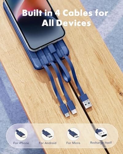 - Built-In Cables portable charger power bank