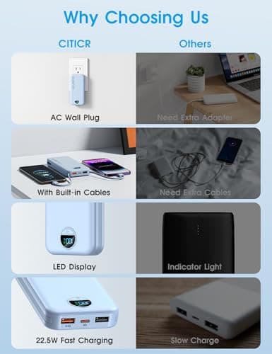 If you top up during short breaks, charge a tablet, or want to give a thin laptop a quick boost, this is the right lane. If you mostly travel and need maximum endurance for days, a higher-capacity pick like 20000 mAh picks is often smarter. If you want the cleanest one-cable carry, built-in cables options can beat PD speed for convenience. iPhone users who care more about snap-on charging than plug-in speed should look at MagSafe/wireless choices. Expect the better PD options to sit in the mid-range to premium tiers.