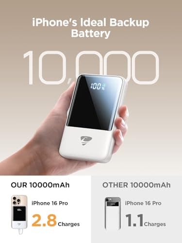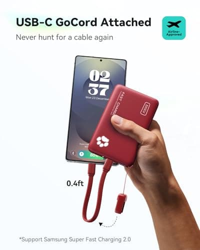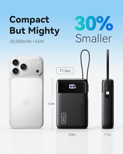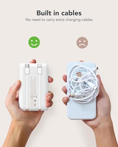 INIU Portable Charger, Ultra Slim 45W Fast Charging with Attached USB C Cable, Flight-Safe 10000mAh PD Power Bank Battery Pack, Travel Essential Phone Powerbank for iPhone 17 16 Samsung S25 Google etc