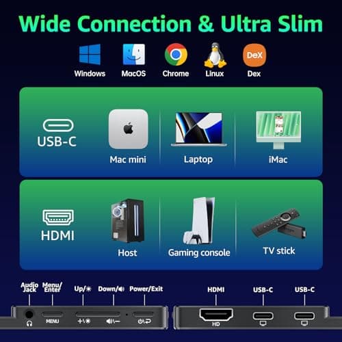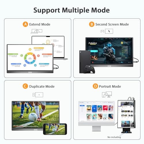 This category is ideal for gamers, professionals, and mobile users who need a high-quality, full HD (1920 x 1080) portable display that balances sharp visuals with convenient mobility for work, entertainment, or multitasking on the go.