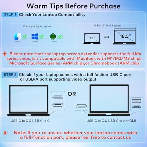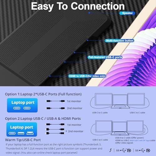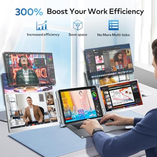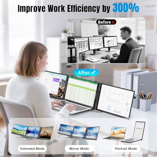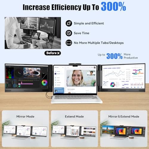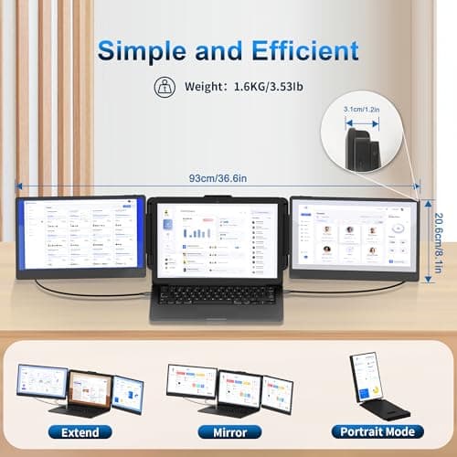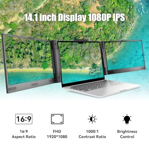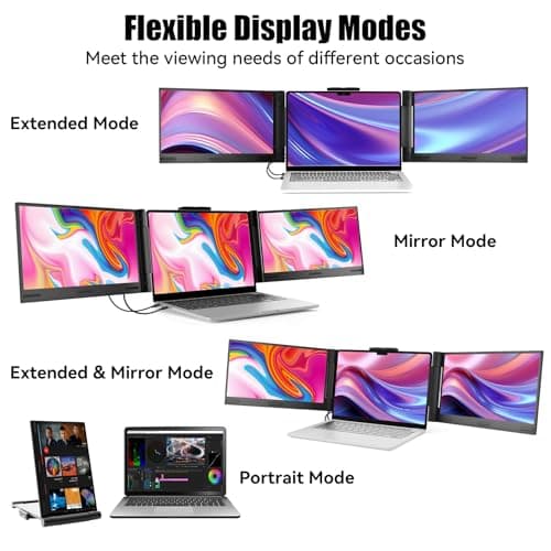 LXU Laptop Screen Extender, 15.6" FHD 1080P IPS Laptop Monitor Extender Triple Screens, Portable Monitor for Laptops 12~17.3 inch, Plug n Play Extended Monitor for MacBooks(NOT M1 M2 M3)/Windows