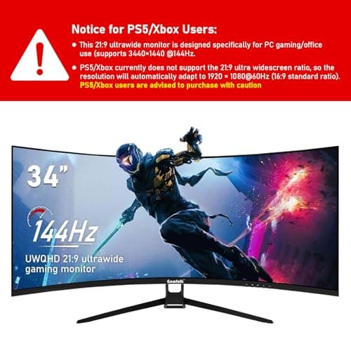 YXPC 34 inch Curved Ultrawide Computer Gaming Monitor 100Hz,UWQHD 3440x1440,1500R,1ms (MPRT),HDR, 300nits, sRGB99%,FreeSync,HDMI2.0(TMDS) x2,DP1.4 x2,Eye Care,VESA(75 * 75mm)