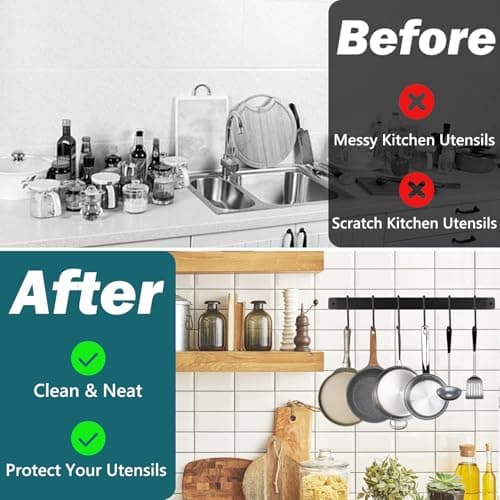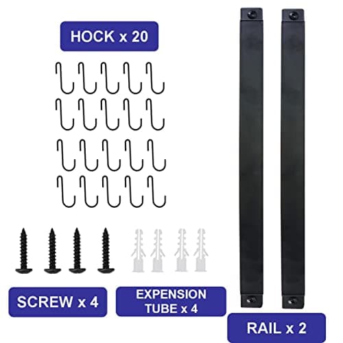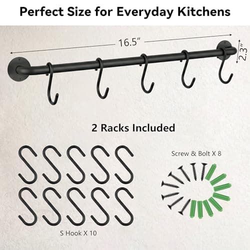 Joben Oligey Utensil Holder, Kitchen Rail With 10 Hooks, Pots and Pans Organizer Hanger, Wall Mounted Wrought Iron Hanging Black 17 Inch for Coffee Mug Rack Cup Hanging, Set of 2