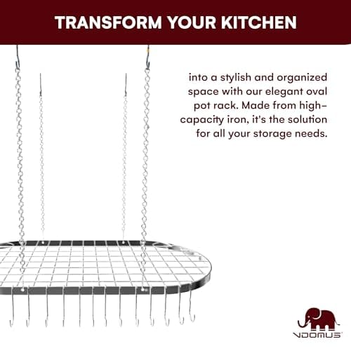 Sorbus® Pot and Pan Rack for Ceiling with Hooks — Decorative Oval Mounted Storage Rack — Multi-Purpose Organizer for Home, Restaurant, Kitchen Cookware, Utensils, Books, Household (Hanging Chrome)