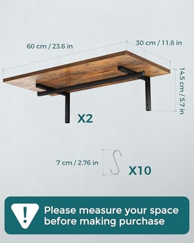 Creso hom Hanging Pot Rack, 24x13 Inch Pot Hangers for Kitchen with 12 S-Shaped Hooks, Vintage Ceiling Mounted Pan Holder with Raised Edges for Cookware Storage, Rustic Brown and Classic Black