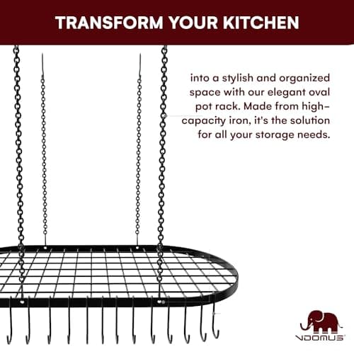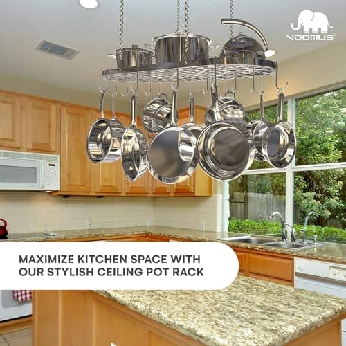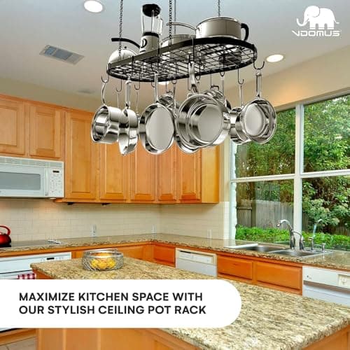 Vdomus Heavy-Duty Hanging Pot Rack - 33x17 Inches - Stylish Black Alloy Steel Ceiling Storage with 15 Hooks - Organize Kitchen Cookware and Utensils - Space-Saving Mounted Overhead Holder