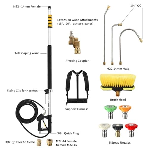 Hourleey Pressure Washer Gun, Red High Power Washer Gun with Replacement Wand Extension, 5 Nozzle Tips, M22 Fittings, 40 Inch, 5000 PSI