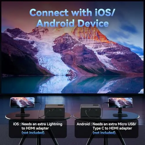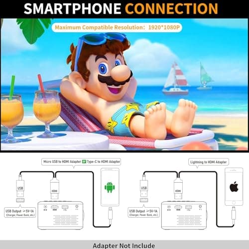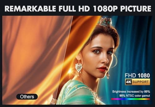 CiBest Mini Projector, 2025 Upgraded Full HD 1080P Support Video Projector, Portable Small Movie Projector, Compatible with iOS/Android/Windows/TV Stick/Box/USB/HDMI