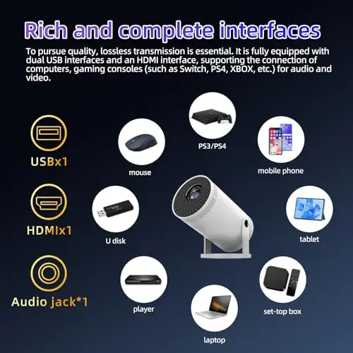 ![[ Projector 4k/8K & Android 14.0 ] Mini Smart Projector, Wifi 6 and Bluetooth 5.4, Short Throw, Built in Apps, Auto Keystone, Outdoor Movie Projector Portable HY300Pro+ (2026 Upgrade)](/essentials/_next/image?url=https%3A%2F%2Fm.media-amazon.com%2Fimages%2FI%2F31mG22VMsRL._SL500_.jpg&w=3840&q=75)