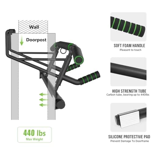 TOPOKO Upgrade Pull Up Bar for Doorway, Max Capacity 440 lbs Chin Up Bar, Portable Upper Body Workout Bar, Strength Training Door Frame Pull-up Bars, Hanging Bar for Exercise, Pullup Bars for Home