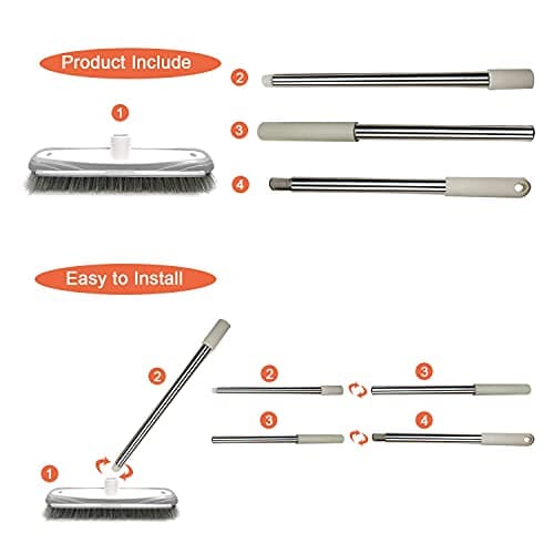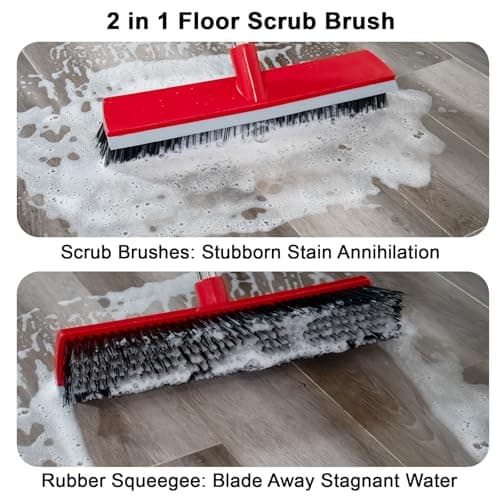 IZSOHHOME Push Broom,Tub Tile Broom Brush,Stiff Bristles Broom for Shower Cleaning, Patio, Kitchen,Grout and Garage,Indoor Outdoor Cleaning Brush,Adjustable Stainless Steel Long Handle-46.5"…