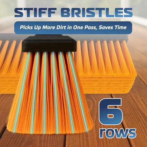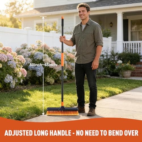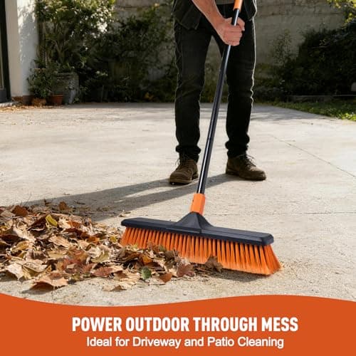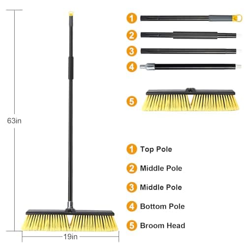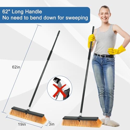 18 Inches Push Broom Outdoor with 65" Adjustable Handle, Heavy Duty Outdoor Broom with Stiff Bristles, for Cleaning Yard, Garage, Shop, Driveway, Wood, Stone, Deck, Concrete, and Tile Floor.