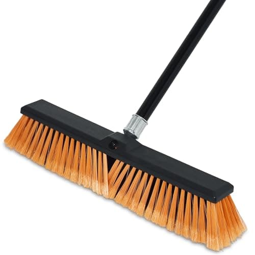 CLEANHOME 24”Push Broom Brush for Floor Cleaning with 65” Long Handle and Stiff Bristles, Heavy Duty Brush for Shop, Deck, Garage, Concrete,Indoor and Outdoor Broom,Orange