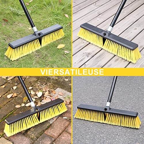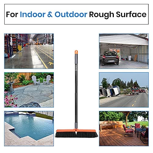 CLEANHOME 18" Push Broom Outdoor for Floor Cleaning with Extendable Long Handle, Stiff Bristle Heavy Duty Broom for Bathroom, Kitchen, Tub, Tile, Patio, Deck, Concrete, Industrial