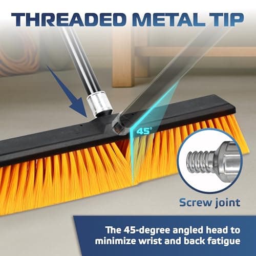 Yocada 18 Inch Push Broom Heavy-Duty Outdoor Commercial Broom Brush Stiff Bristles for Cleaning Patio Garage Deck Concrete Wood Stone Tile Floor 65.3 inch Long