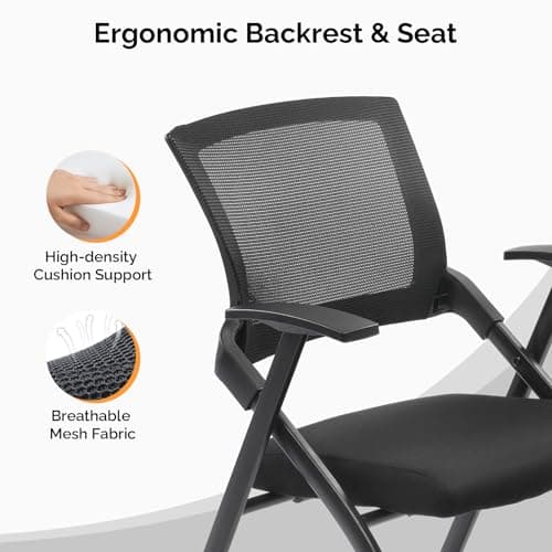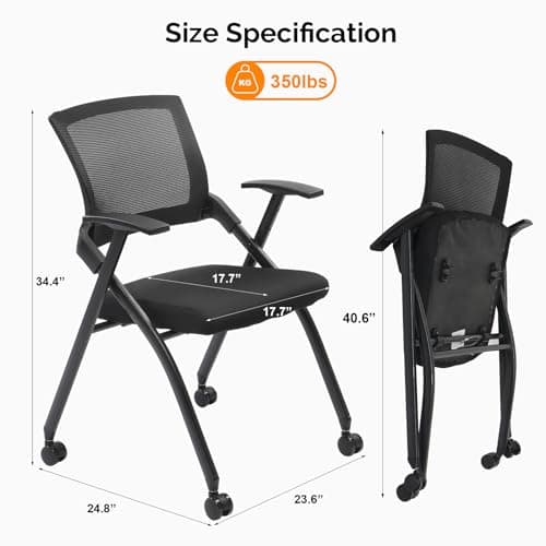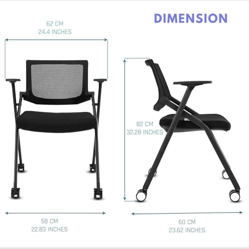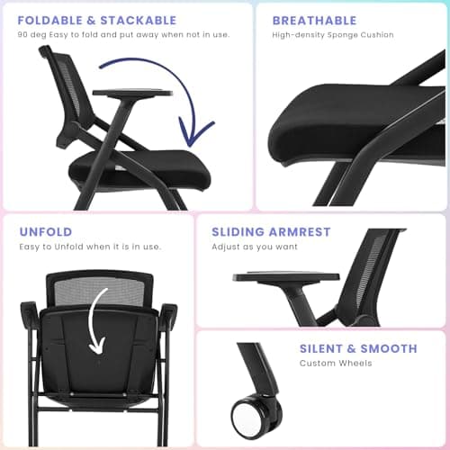 Eikyutora 1 Pack Modern Black Office Guest Reception Chairs, Ergonomic Foldable & Stackable Mesh Desk Chairs with Wheels, for Home, Office, Conference Rooms