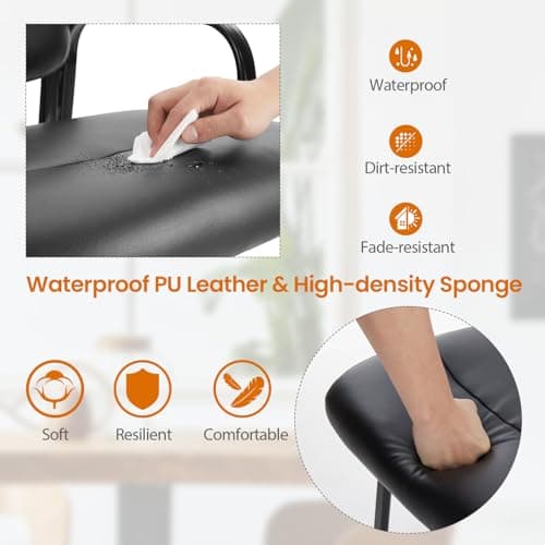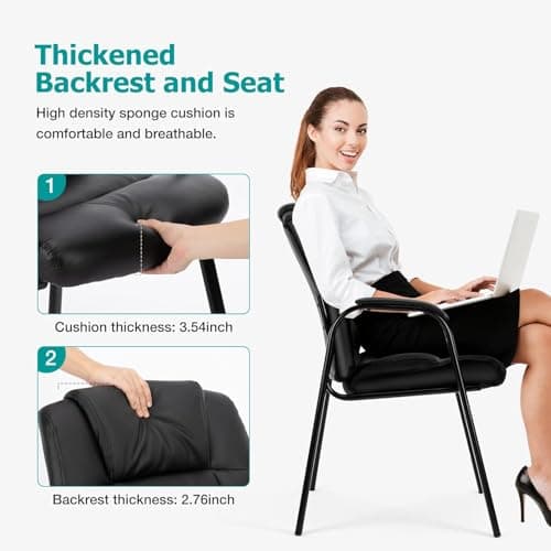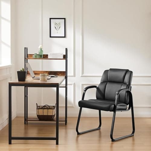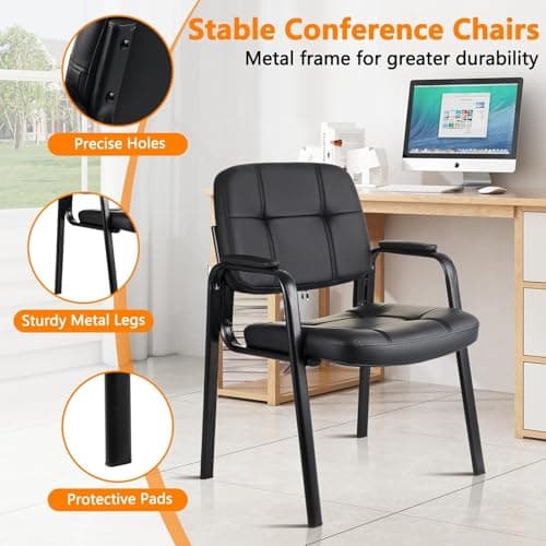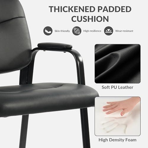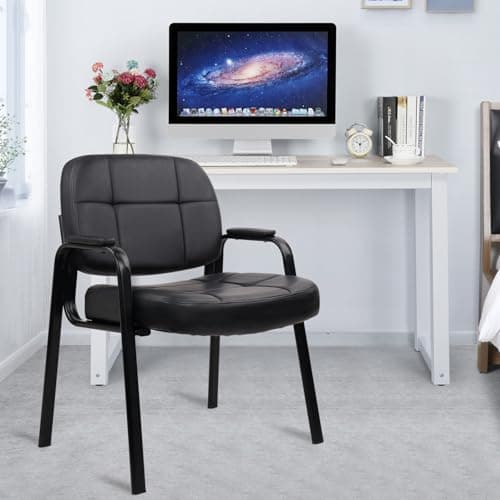 Sweetcrispy Waiting Room Chairs, Leather Stationary Office Guest Chair No Wheels, Comfy Padded Arms and Seld Base, for Reception Area Conference Room Lobby Home Computer Desk Bedroom Elderly, Black