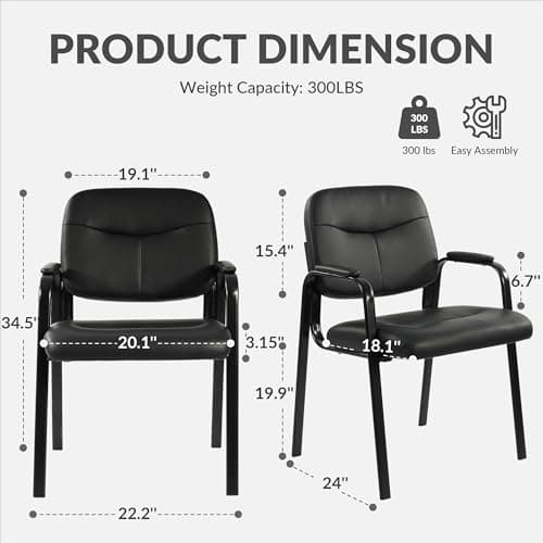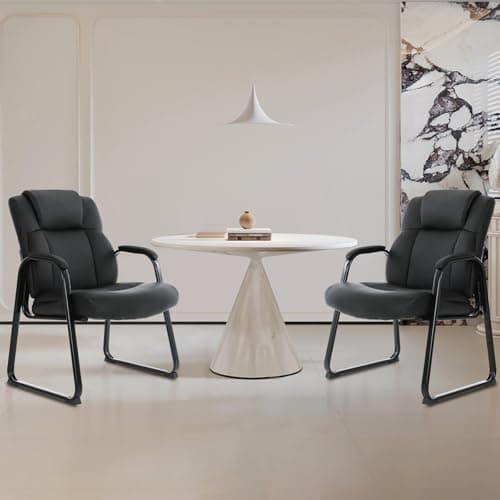 Sweetcrispy Office Reception Guest Chair No Wheels Set of 2, Leather Stationary Waiting Room Chairs with Padded Arms for Elderly Desk Conference Room Lobby Table Side Salon, Inky