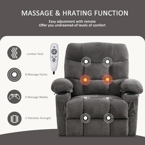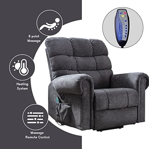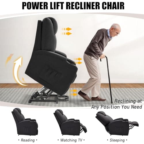 MCombo Dual Motor Power Lift Recliner Chair for Elderly, Lay Flat Lift Chair with Heat and Massage, Extra Wide Lift Recliner for Big People, Cup Holders, Fabric R7897 (Dark Gray, Medium-Wide)